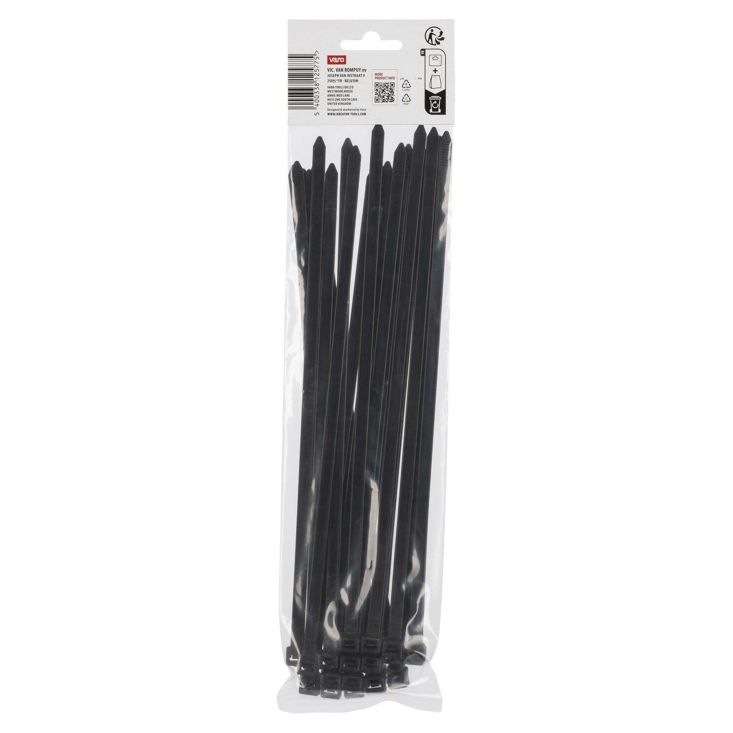 See komplekt sisaldab 25 musta nailonist kaablisidet mõõtudega 300 mm x 76 mm. Vastupidavad kaablisidemed omavad kõrget venitusjõudu. Kasutage neid kaablite korrastamiseks või esemete omavaheliseks kinnitamiseks. Peitke kaablid ja juhtmed oma kontoris või töökojas puhtalt, sidudes need nende kaablisidemetega.