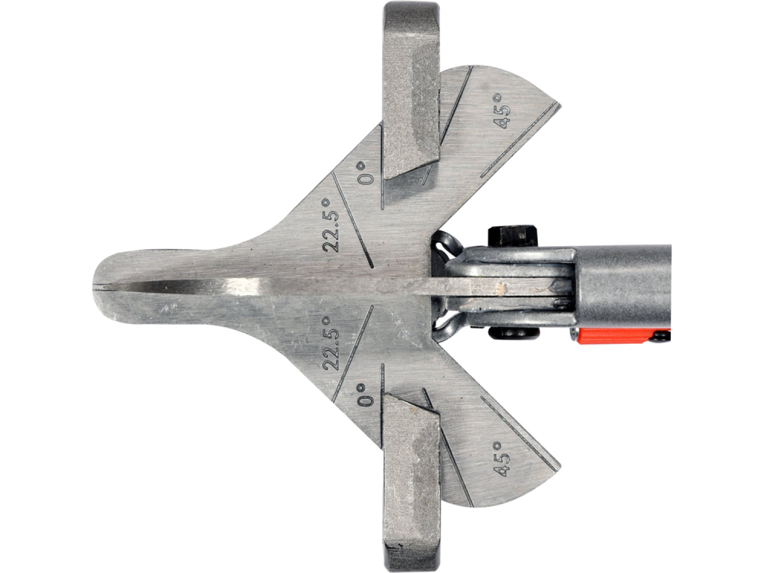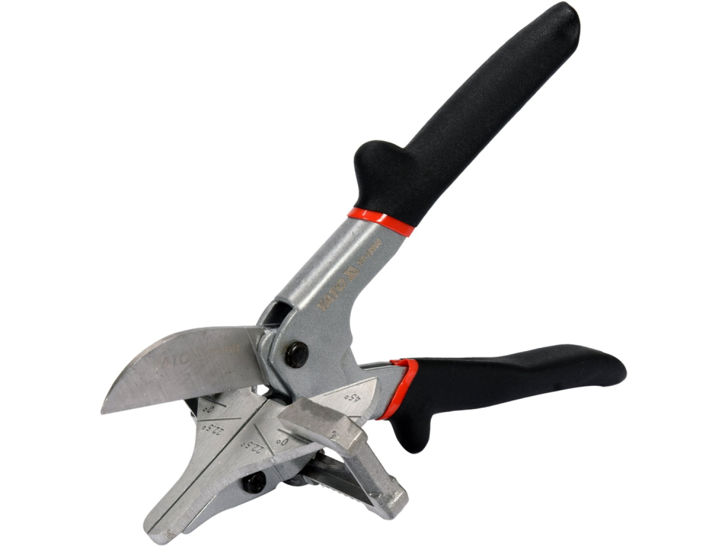 YATO YT-18960 ir daudzfunkcionālas šķēres, kas paredzētas sloksņu, cauruļu, blīvju un citu materiālu, piemēram, vinila, gumijas un plastmasas, leņķveida griešanai.