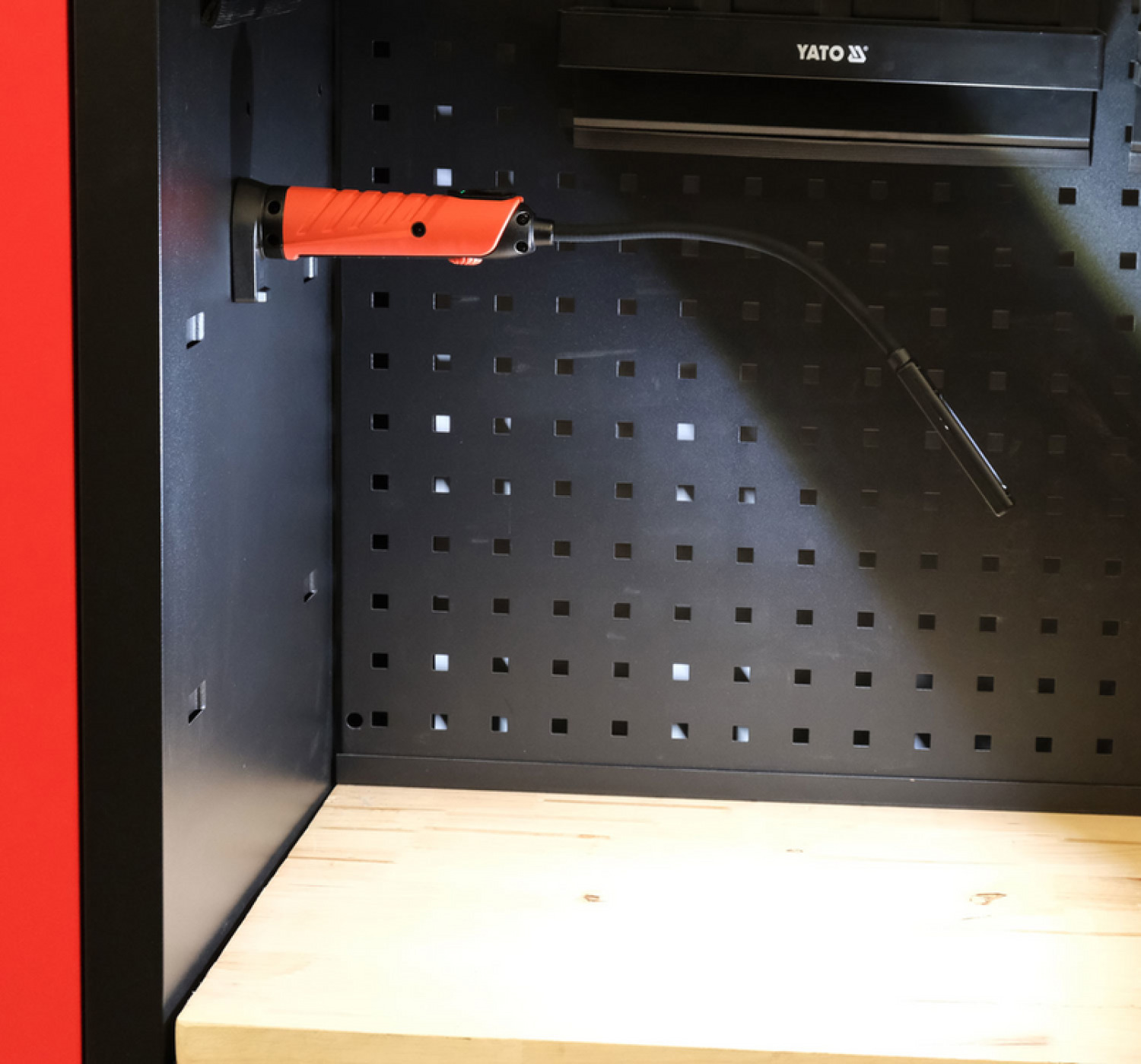 YATO darbnīcas lampa YT-08527, pateicoties elastīgajai, plānai rokai un divpusējai COB diodei, ļauj apgaismot grūti pieejamas vietas.