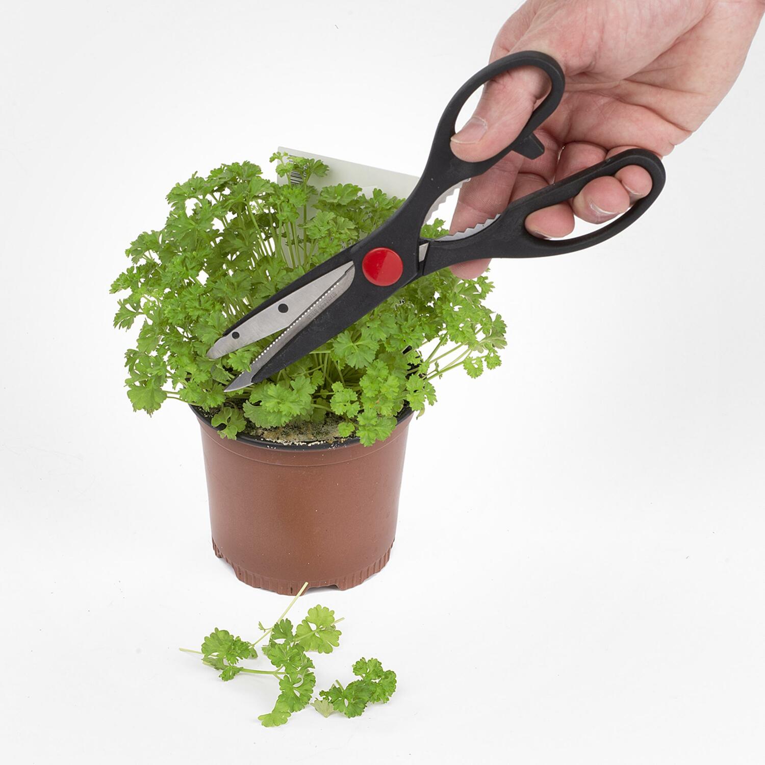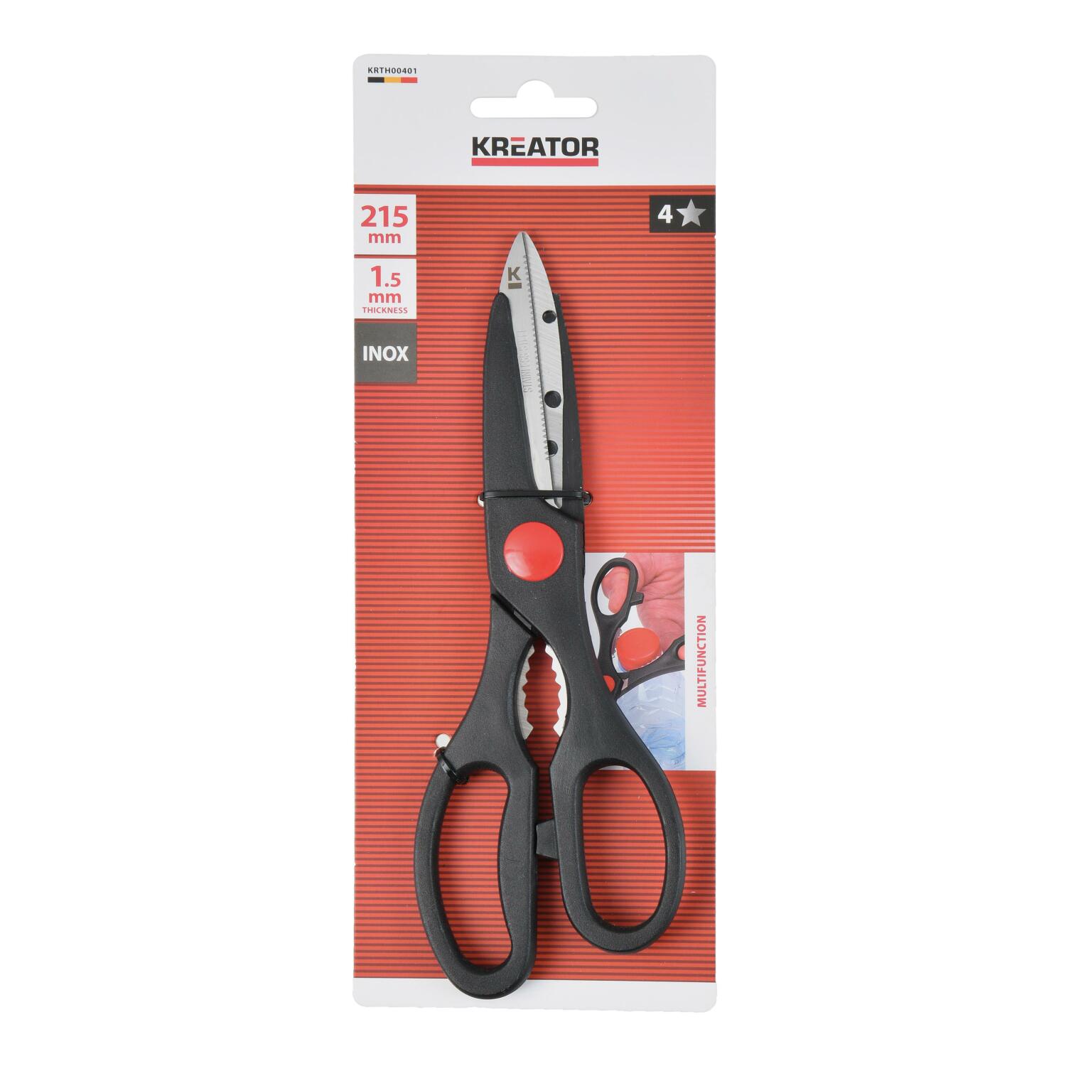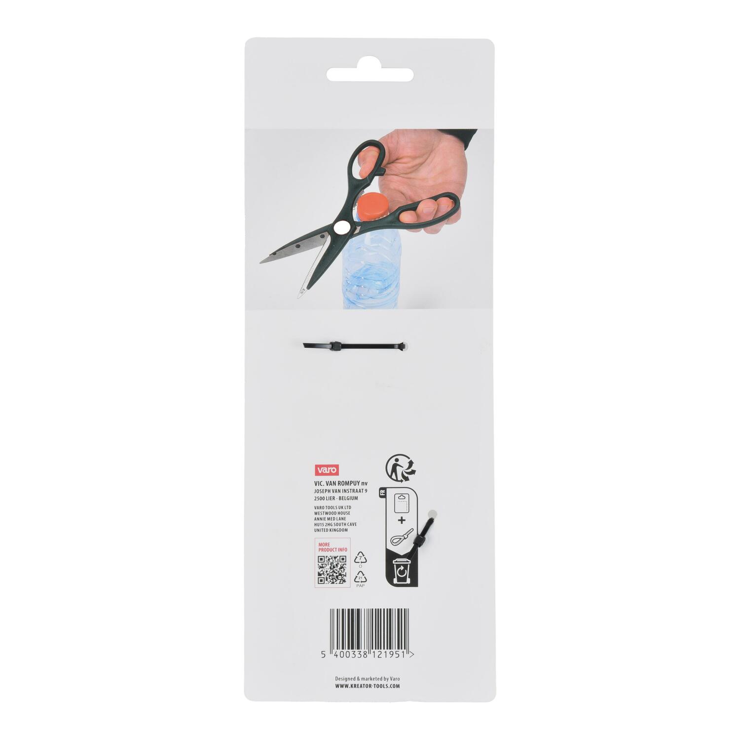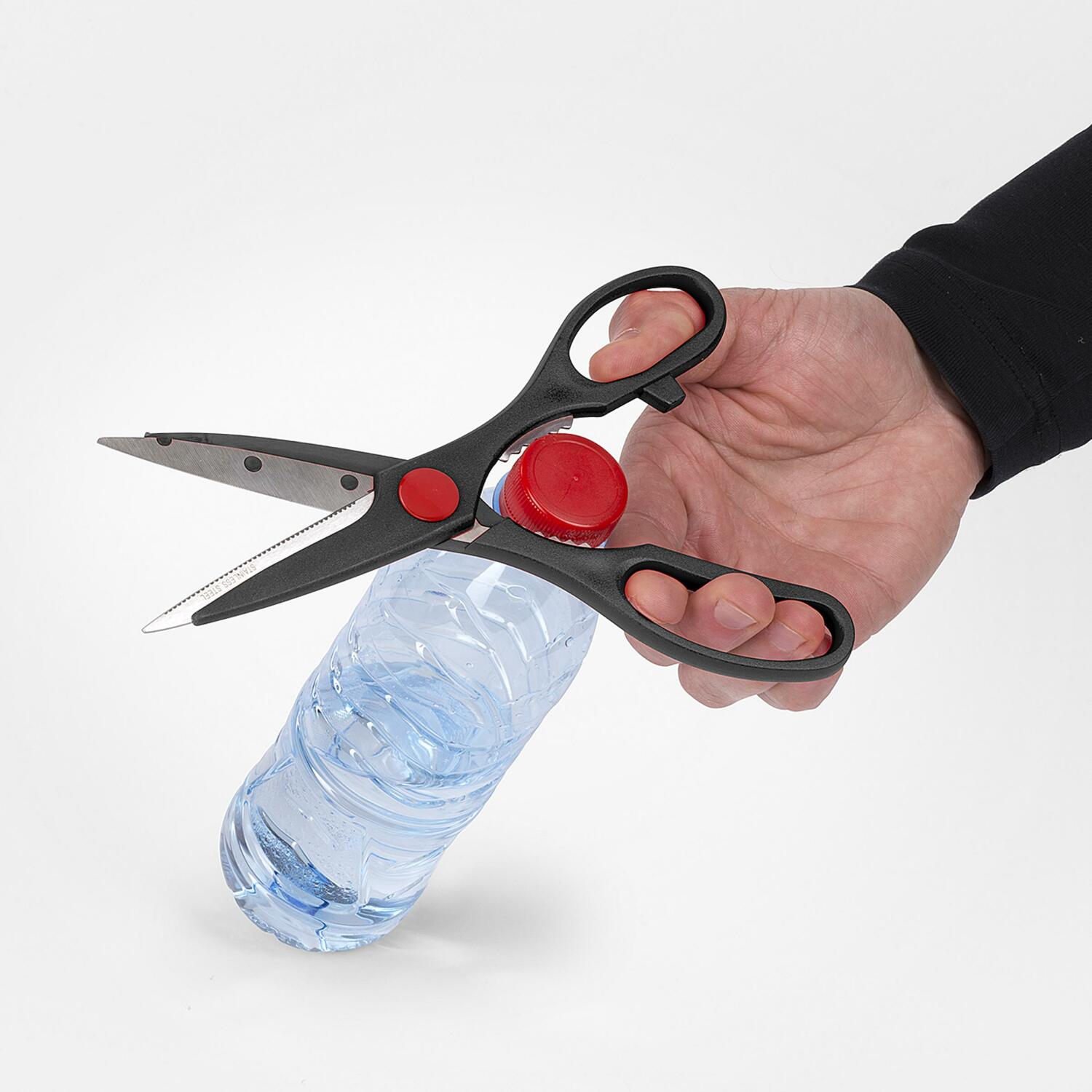 Šīs daudzfunkcionālās šķēres ir praktisks rīks ikdienas uzdevumu veikšanai. Tām ir pret slīdējoši rokturi, un iekšpusē ir zāģveida daļa, kuru var izmantot kā pudeles atkorķētāju vai riekstus laušanas rīku. Šķēres ir 215 mm garas un izgatavotas no pulēta nerūsējošā tērauda. Tās ir mazgājamas trauku mazgājamajā mašīnā. Asmeņi ir 1,20 mm biezi.