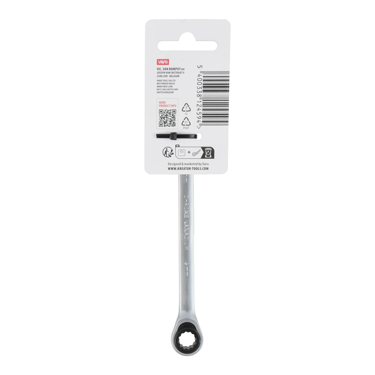 Šis dubultais ratcheta un atvērtais uzgriežņu atslēga no zīmola KREATOR ir 152 mm gara un izgatavota no augstas kvalitātes hroma-vanādija. Tai ir 9 mm uzgriežņu izmērs.