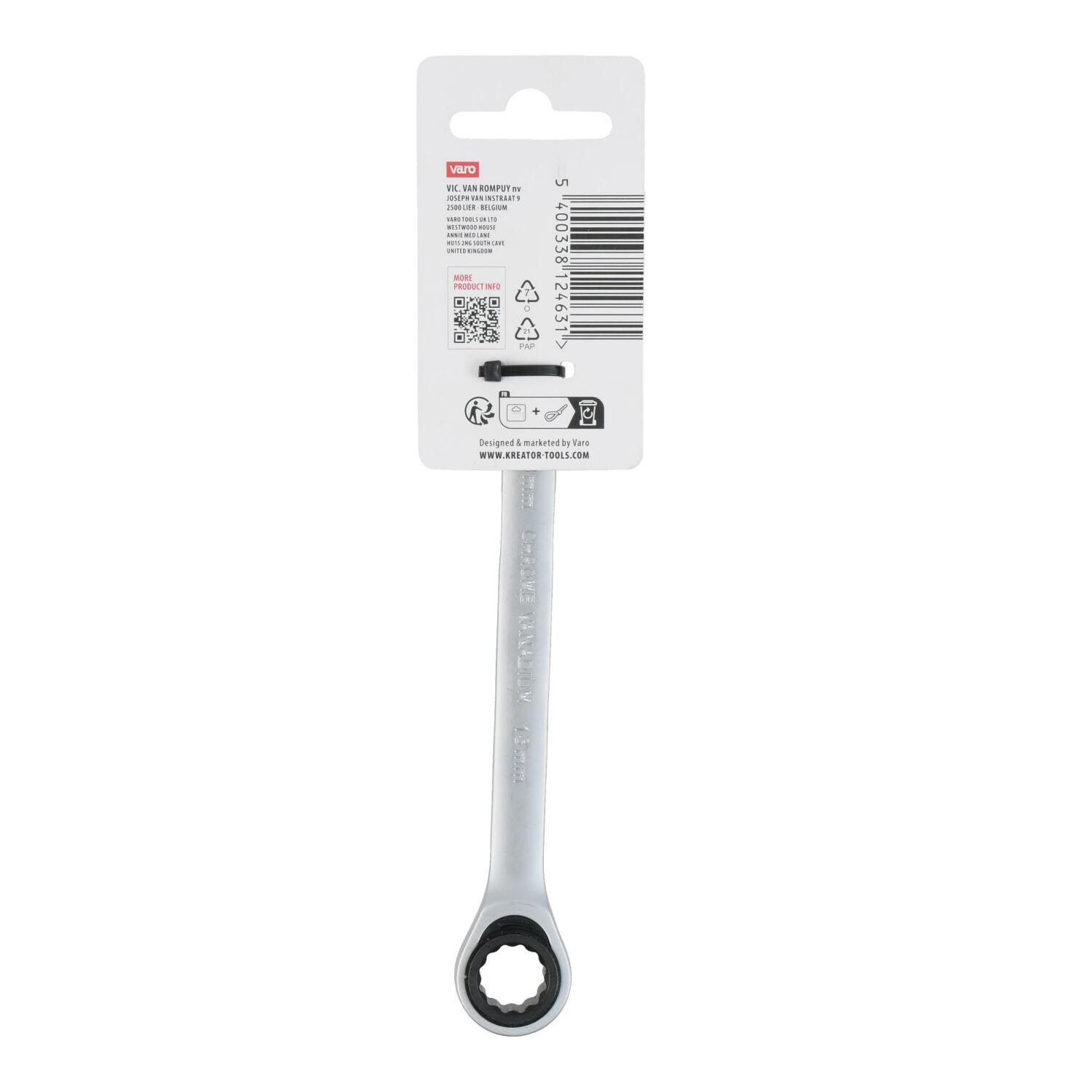 Šī KREATOR KRTH30506 kombinētā atslēga ar reverso mehānismu ir 181 mm gara un izgatavota no augstas kvalitātes hromēta vanādija. Tai ir gredzena izmērs 13 mm.