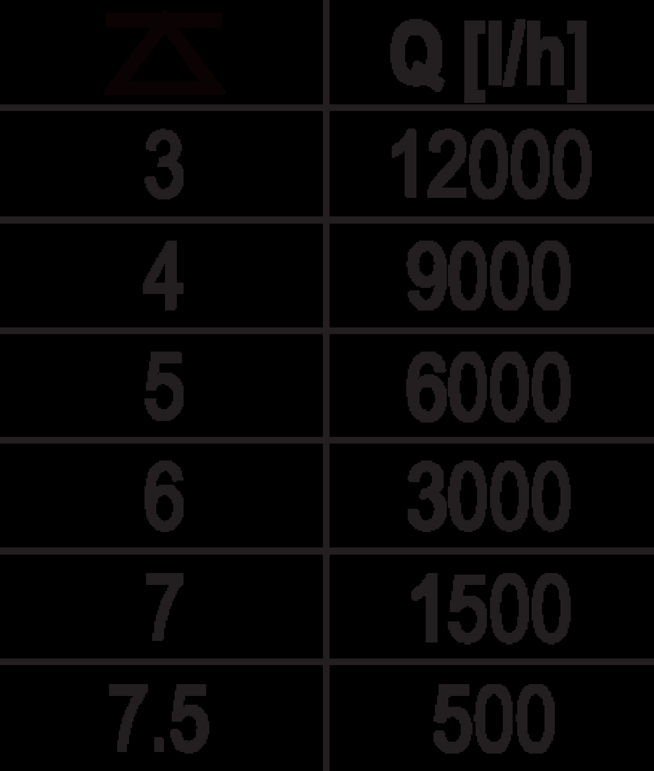 | Maksimālā ūdens caurlaidība, l/h | 12000 |