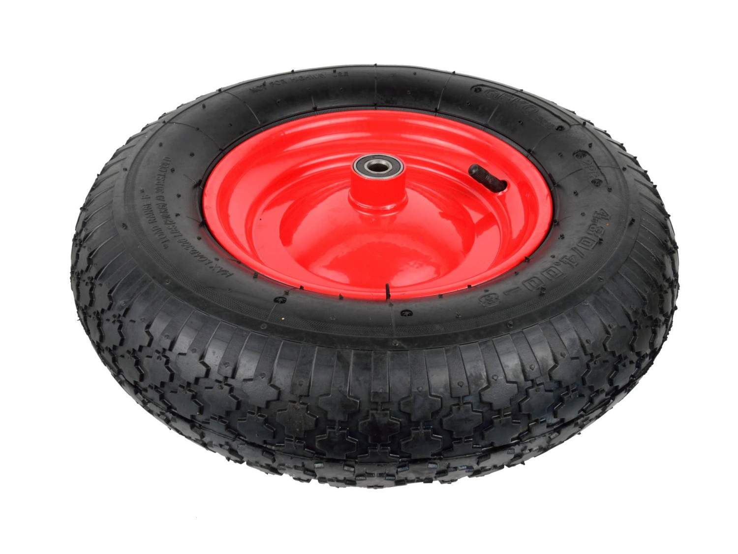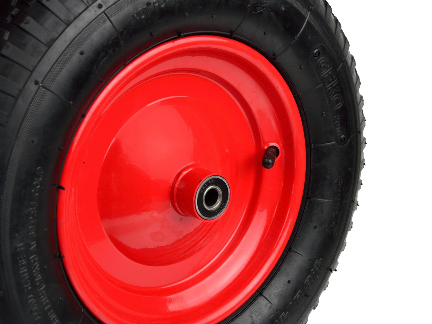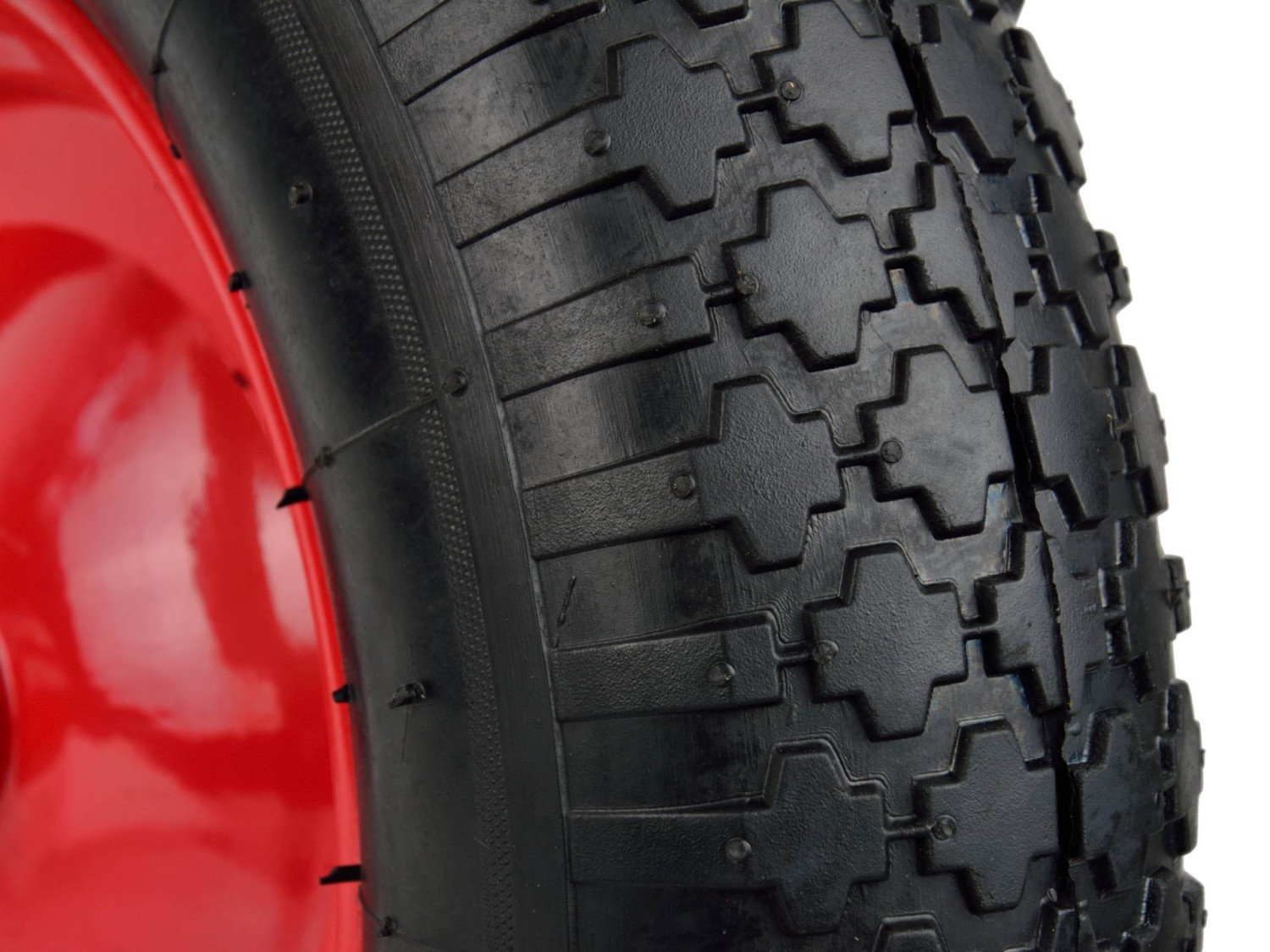 Izturīgs un uzticams ķerras ritenis ar 4.00-8 izmēra gumijas riepu un metāla disku nodrošina vienmērīgu gaitu un augstu noturību ikdienas darbos. Tas ir paredzēts dārza, būvniecības un saimniecības ķerrām, kur nepieciešama stabila un triecienizturīga kustība pa nelīdzenām virsmām. Ritenis iztur līdz 100 kg slodzi, un tā pneimatiskā riepa ar 2PR slāņiem garantē elastību un triecienu amortizāciju. Metāla disks ar gultni nodrošina ilgmūžību un precīzu rotāciju.