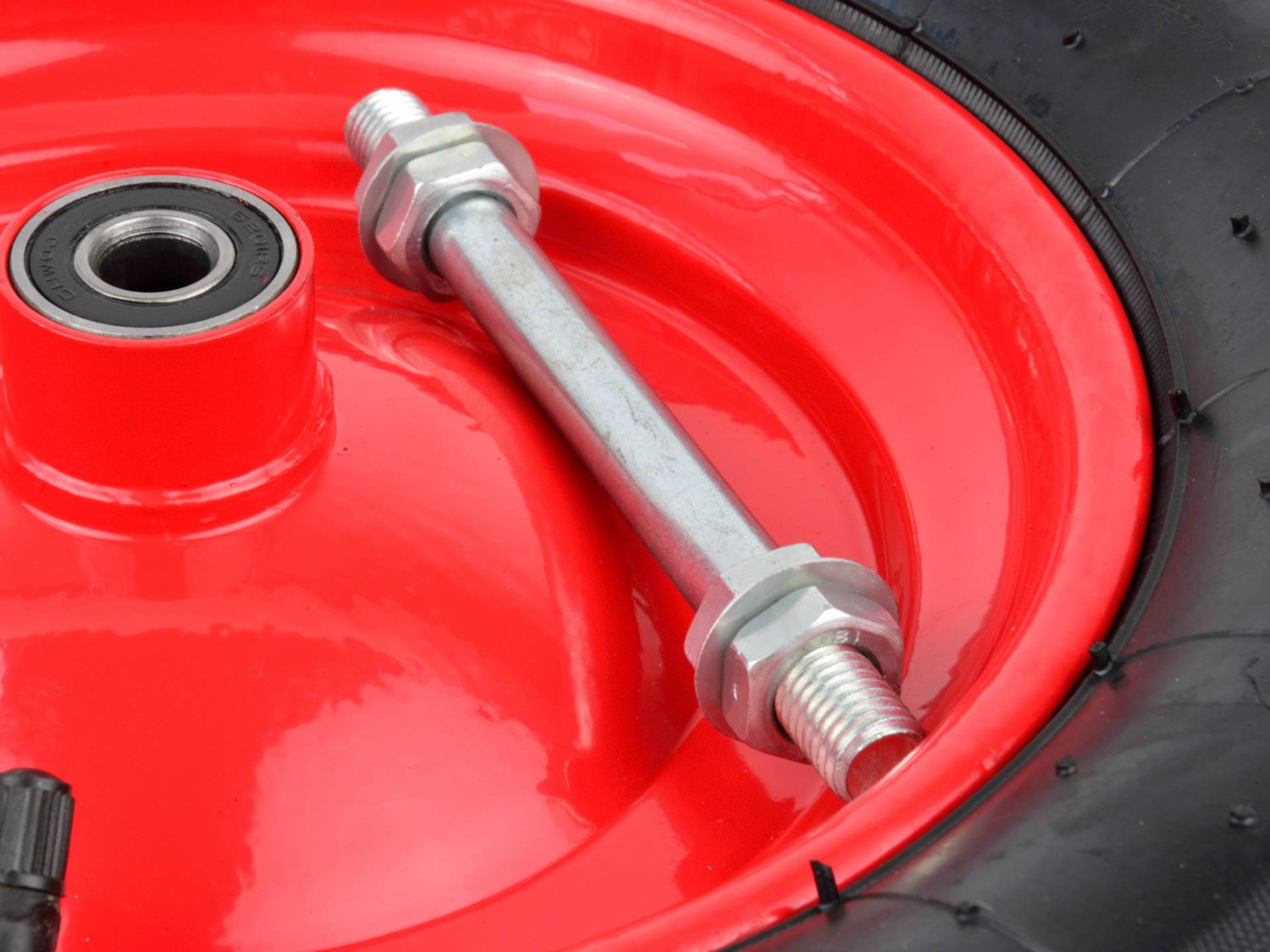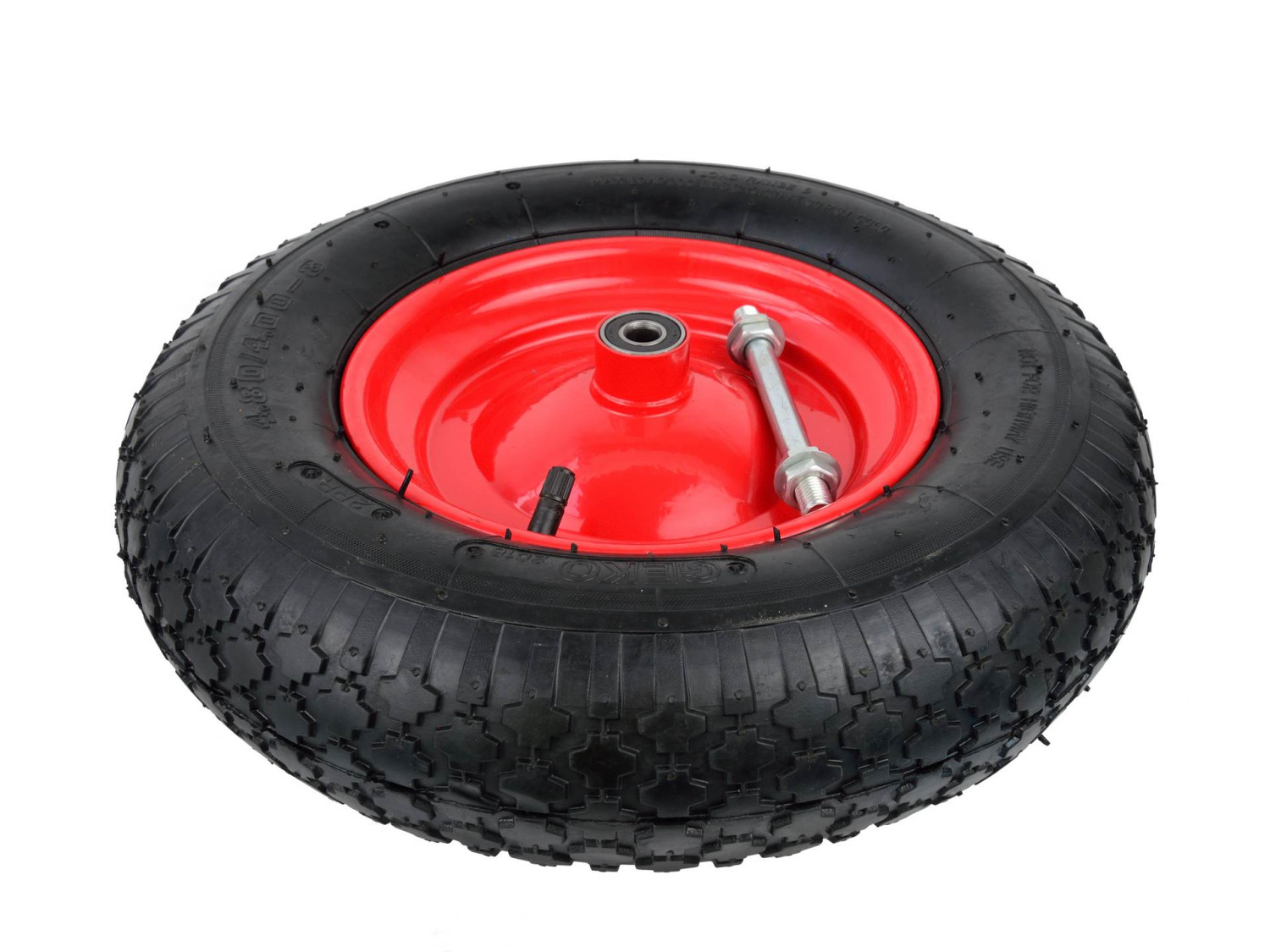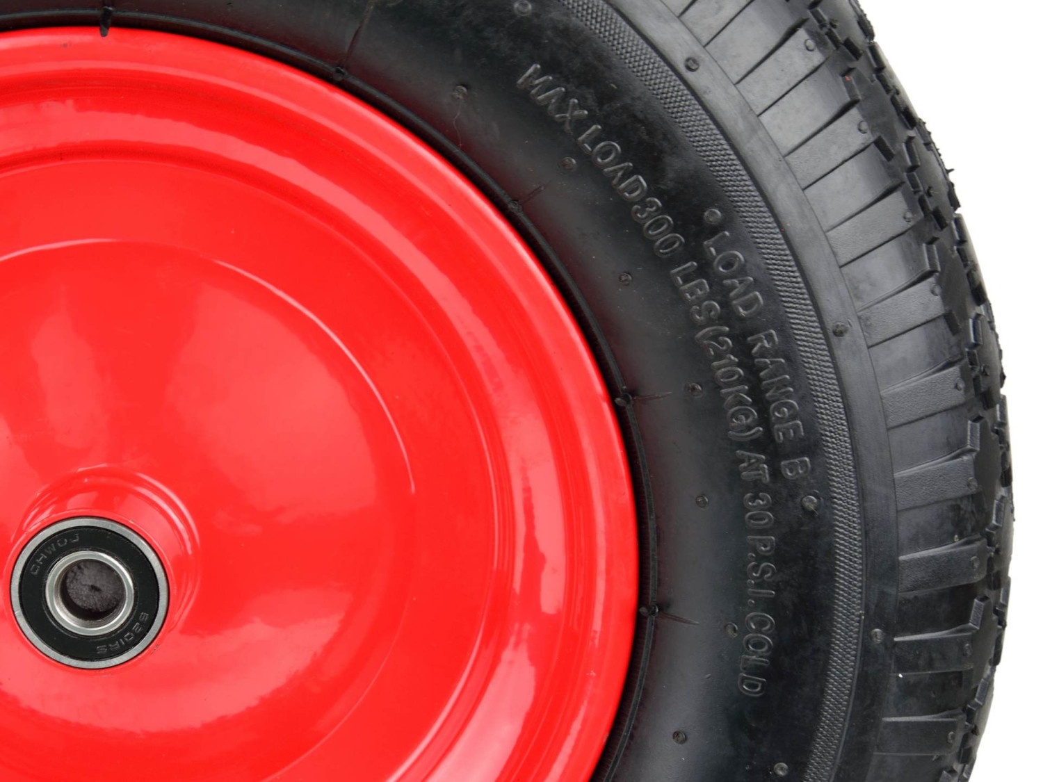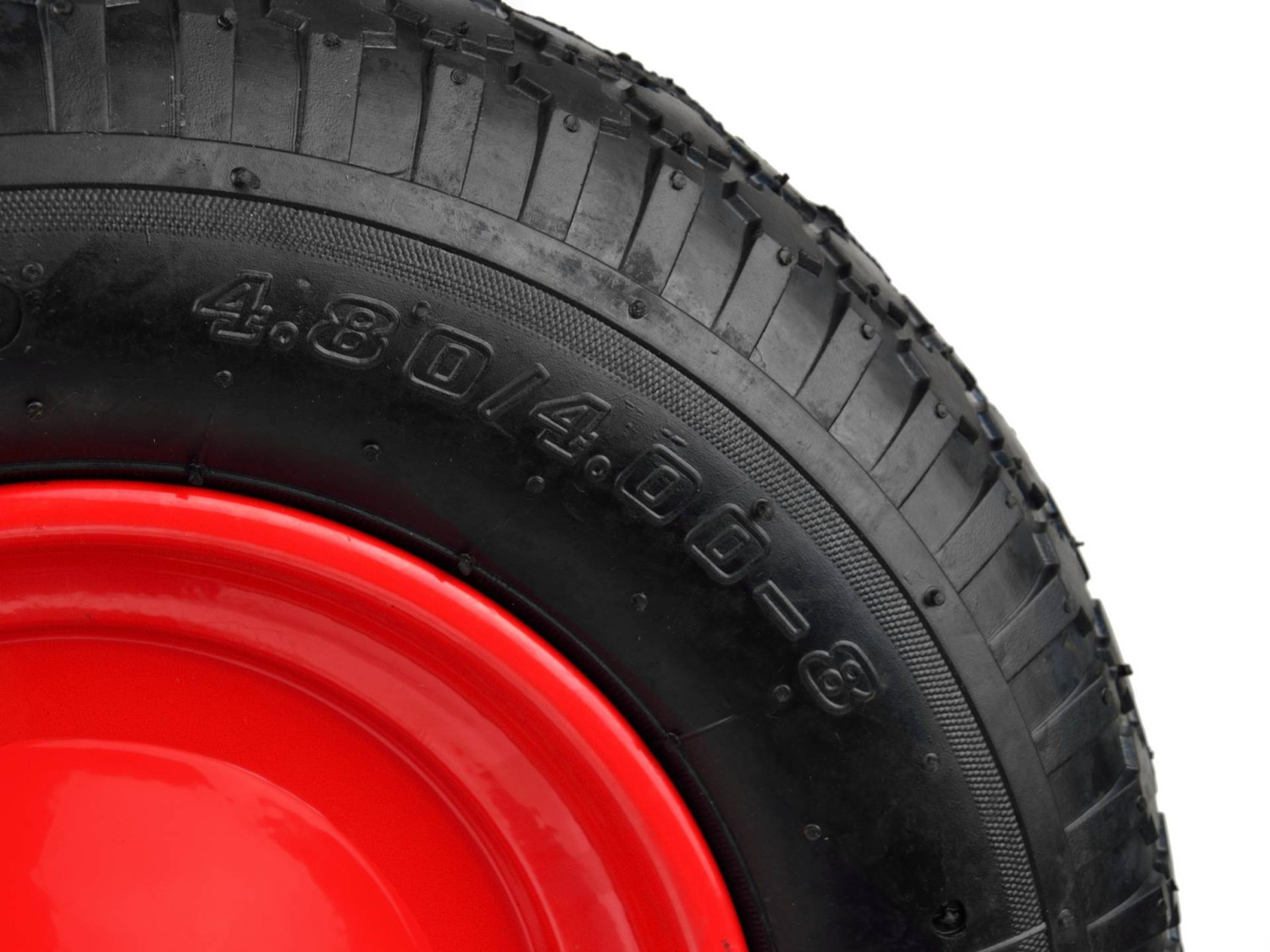Izturīgs un uzticams ķerras ritenis ar 4.00-8 izmēra gumijas riepu un metāla disku nodrošina vienmērīgu gaitu un augstu noturību ikdienas darbos. Tas ir paredzēts dārza, būvniecības un saimniecības ķerrām, kur nepieciešama stabila un triecienizturīga kustība pa nelīdzenām virsmām. Ritenis iztur līdz 100 kg slodzi, un tā pneimatiskā riepa ar 2PR slāņiem garantē elastību un triecienu amortizāciju. Metāla disks ar gultni nodrošina ilgmūžību un precīzu rotāciju.