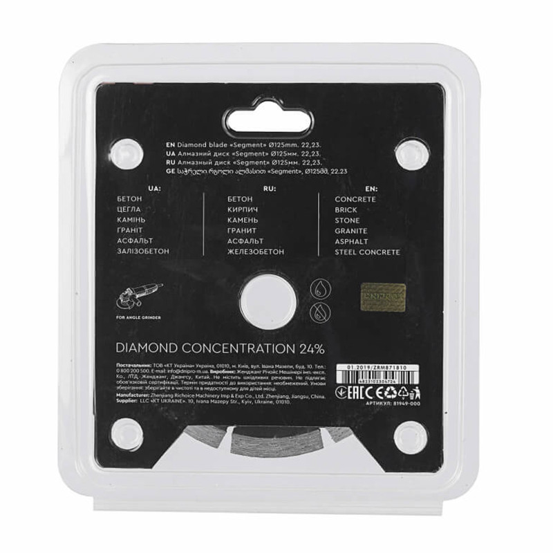 Dimanta asmens Dnipro-M segment ir efektīvs betona, šīfera, jumta dakstiņu, ķieģeļu un akmens griešanai.