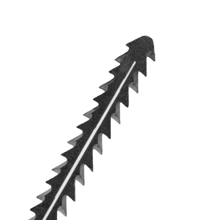 Pateicoties frēzētajiem, nostiprinātajiem zobiem, asmens nodrošina ātru griešanu.